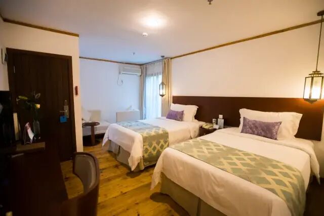 打卡:酒店网红教堂、网红秋千 在这里度假,宁静而纯净, 设计感十足也不失私密, 特别适合一家人或者情侣在此度假~ 深圳皇庭柚柑湾度假酒店 抢购价:799元/套 抢购时间:即日起-售完即止 预约时间:需提前1天网站预约 使用时间:2021年5月6日~6月30日 请识别二维码查看房态 请注意:库存一次性放出,上方可先查看房态再进行购买,每天库存数量有限,先到先得,不接受指定月份或某一天使用,以实际库存为准,如需指定时间不建议参与本次活动. 套餐包含: 尊贵森林亲子房或半山森林别墅拆分房1间1晚(随机安排,1.2米双床,1.8米大床) 2大1小(1.2m以下)精美早餐 2大1小(1.2m以下)精美下午茶(默认入住当天使用) 拍照打开酒店网红教堂尖顶、秋千、码头、赏深圳绝美日落景观 *早餐使用时间:08:00-10:00 *下午茶使用时间:13:30-16:30 注:1小指的是1.2米以下 升级说明:(前台到付) 5月平日不加收,周五加收200元/间/晚,周六加收500元/间/晚 6月平日加收50元/间/晚,周五加收300元/间/晚,周六加收600元/间/晚 6月12、13号加收1200元/间/晚 升级房型(预约时在线加收): 升级尊贵海景房或半山海景别墅房加收100元/间 升级房型时遇加收日期需叠加收费! 配套增加价格(仅供参考,费用前台自理): 增加早餐:成人68元/位,1.2-1.4米小孩38元/位 升级房型遇加收日期费用需叠加收取,所有加收费用酒店前台支付! 以上补差需【成功支付齐全】方可办理入住 额外增加费用: 1、早餐:1.4米以上儿童及成人68 元/位,1.2米-1.4米儿童38元/位,1.2米以下儿童免费; 早餐参考时间:08:00-10:00 (价格仅供参考,具体请以酒店前台实际收费为准) 亲子房的床型1.3米双床,1.8米大床 活动规则: 【活动流程】 支付购买→接收预约码凭证短信→进入网站预约使用日期→如预约成功后会出现“预约核销成功”提示页面,如无显示请尽快咨询购买平台→凭预约成功短信于前台办理入住 【特别声明】 1、本产品不适合指定日期使用,入住日期以实际房态链接为准!请慎重购买 2、本活动为特殊产品,一经支付活动定金,不设退款,每天均预留一定库存供客人预约使用,超出使用日期未用视为放弃,电子码自动作废! 3、每间房限住2位成人,一人一证办理入住,请随身携带身份证 4、入住参考时间:15:00后,退房时间:12:00前 5、电子码:1套=1个电子码=1间客房,下单成功后立即发送电子码 6、购买此套票视为认同此声明及认同活动规则,此活动最终的解释权归酒店所有 深圳皇庭柚柑湾度假酒店 犹如养在深闺的千金小姐,犹如净土般的世外桃源, 隐于南澳大鹏镇鹅公湾附近 这里面朝大海,三面环山,乃藏风纳气的形胜之地。