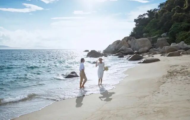 这里的海滩私密,沙质细腻 水质一流 整个酒店内环境只有住客享受和使用。 so!没有扎堆的游客,拍照无需排长队, 成片里不会有路人甲乙丙丁,这里,只属于你。 阳光普照时,这里的空气里 弥漫着大自然的味道,温热而亲切