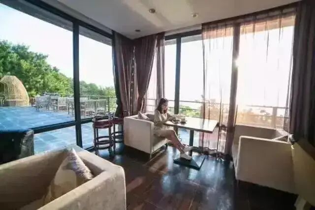 酒店外观 群山环绕,郁郁葱葱的青山绿水簇拥。在这里度假,宁静而纯净,设计感十足也不失私密,特别适合一家人或者情侣在此度假~ 全海景咖啡厅(赠送精美下午茶)
