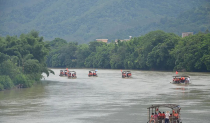 带上你的轻松的心情,乘着香溪河上的竹筏