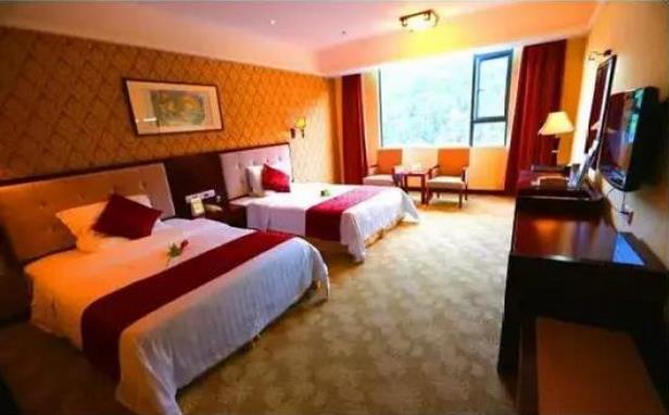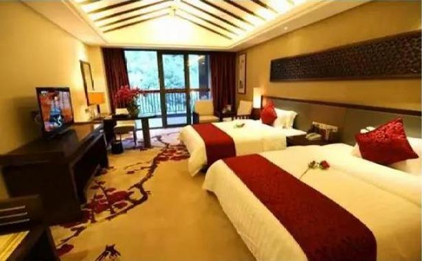 房间均铺设高档地毯,换上酒店为客人准备的软底拖鞋,一踩一踏悄无声息,如步行在云端。身处雅室,推开窗子,看茫茫原始森林在霞光的照射下,层林尽染……